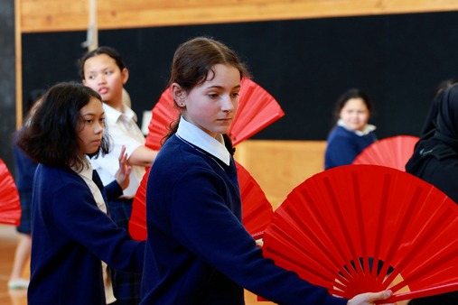 On Aug 17, the China Cultural Center in Wellington trained students from Wellington's East Girls' College in tai chi fan.