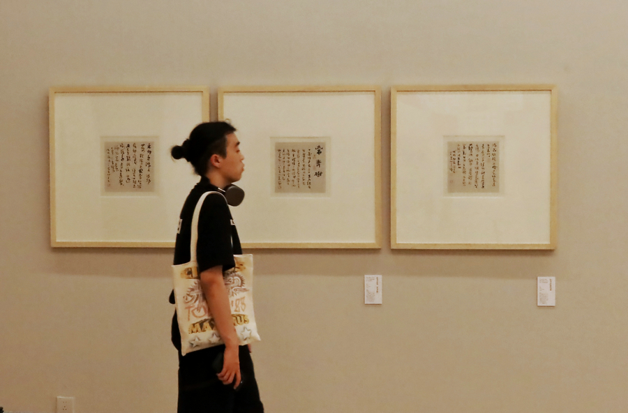 Veteran calligrapher Xia Xiangping's exhibition at the National Art Museum of China marks his endeavors in the world of ink for some 80 years. [Photo by Jiang Dong/China Daily]
