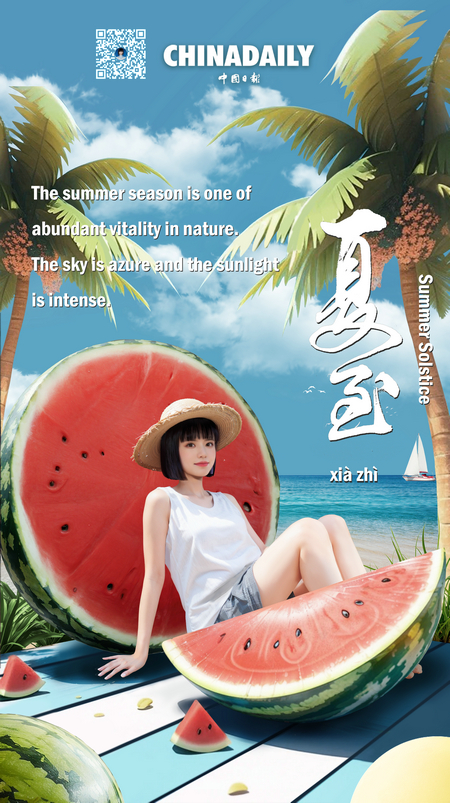 In the Northern Hemisphere, xiazhi, or the Summer Solstice, marks the longest day of the year. It's a time when nature thrives in abundant vitality. The sky is azure and the sunlight is intense. Embrace the vibrant energy of summer!